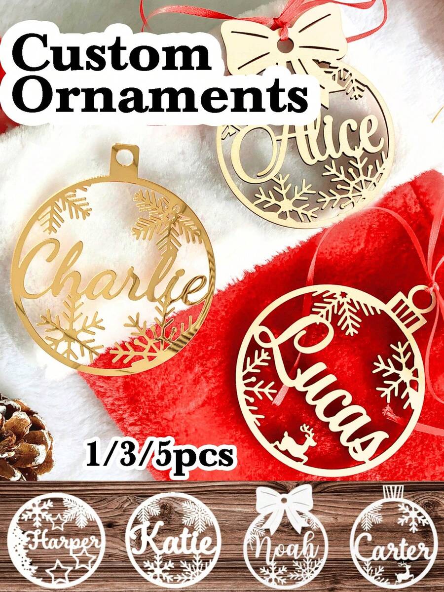 1/3/5pcs, Packs, Personalized Text Decorations, Christmas Gifts, Ornaments, And Pendants; Personalized Christmas Trees/Decorations; Engraved Anniversary Gift Pendants; Engraved Christmas Tree Ornaments; Creative Text Decorative Pendants