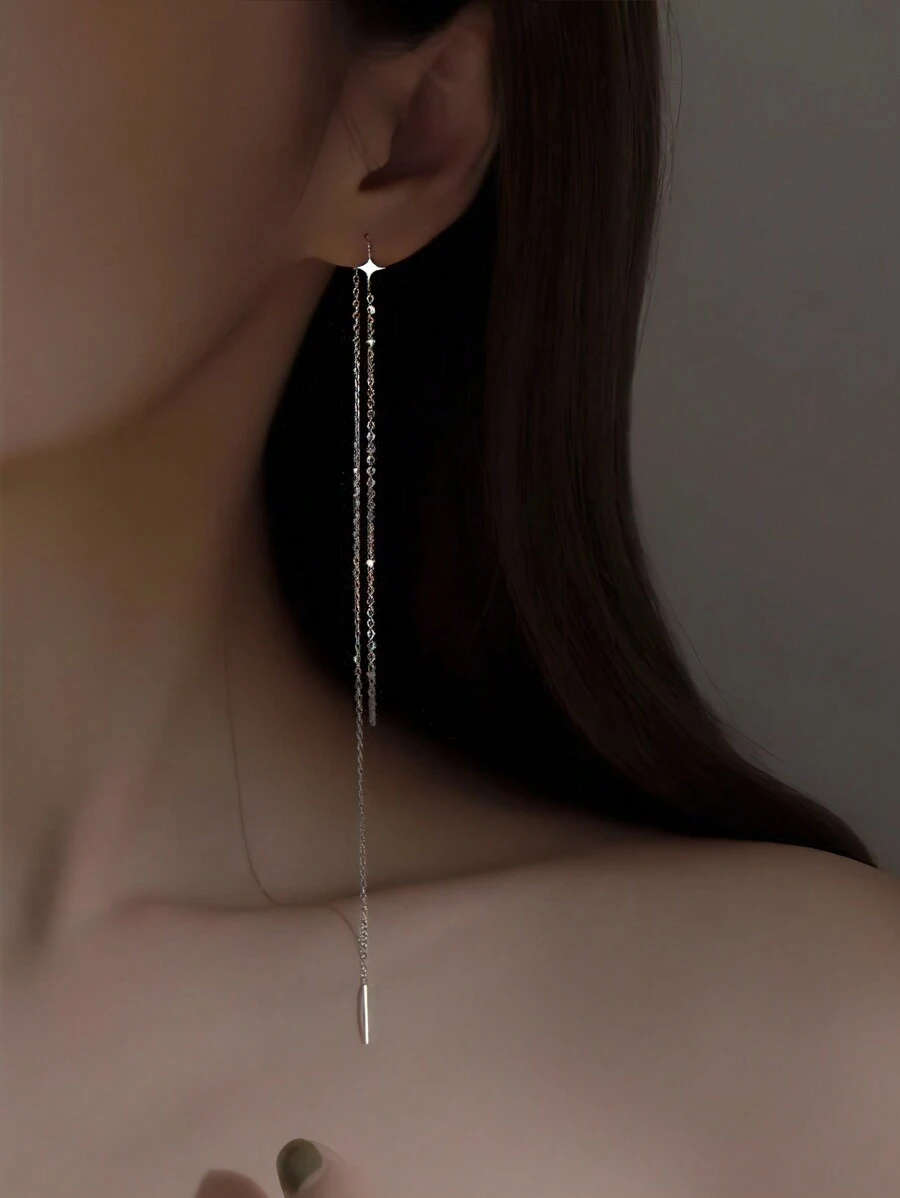 1 Pair Of Minimalist And Unique Design Four-Leaf Ear Thread Earrings For Women, Korean Style, Slimming Face And Ear Decoration For Summer Holiday