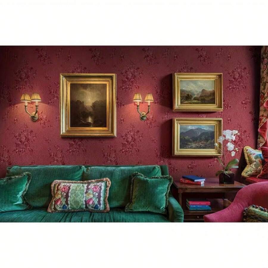 1 Roll Vintage Red Floral Wallpaper - Thick Self-Adhesive Red Rose Peel And Stick Wallpaper, Removable, Suitable For Shelves, Drawers And Decorative Surfaces, Decorative Wallpaper | Floral Pattern | Living Room, Bedroom, Bathroom, Kitchen, Home Decor, Furniture Renewal Sticker, Kitchen Sticker 17.7in X 39.3ft/118.1in/196.8in