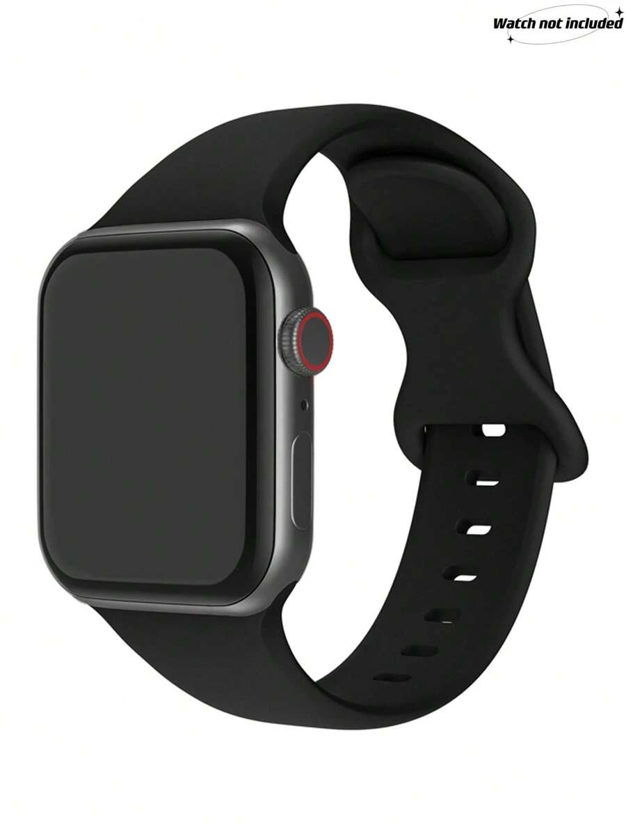 1pc Black Cute Casual Soft Silicone Sports Watch Strap Butterfly Buckle Comfortable Adjustable Waterproof Wristband, For Apple Watch Band 38/40/41/42/44/45/46/49mm, For Apple Watch Series Ultra/SE/11/10/9/8/7/6/5/4/3/2/1, Intelligent Watch Accessories