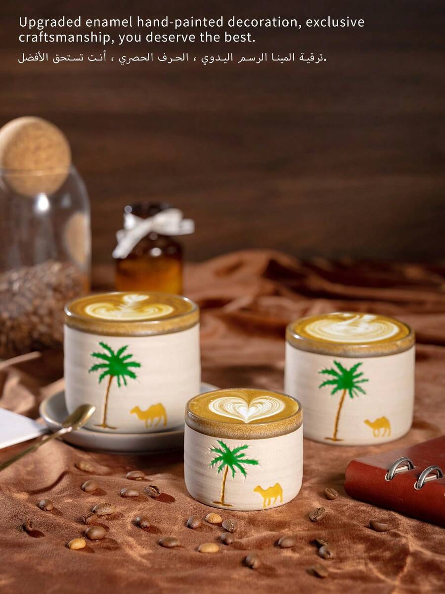 1pc Exquisite Desert Camel Pattern Ceramic Espresso Cup (Upgraded Enamel Version), Creative Middle Eastern Style Ceramic Gift, Suitable For Daily Use - Saudi National Day - Saudi National Day Supplies Distribution - Cup - Coffee Cup