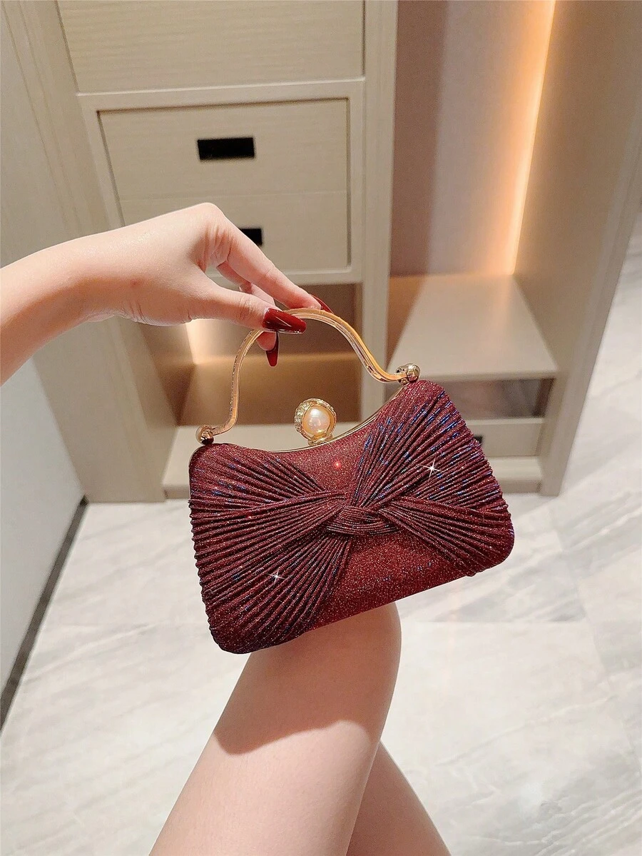 1pc Glittery Bow Design Mini Box Clutch Bag, Elegant Luxury Rhinestone Decor Evening Dress Purse, Charming Party Handbag, Glamorous Ladies' Clutch For Formal Events, Suitable As Holiday Gift, Comes With Detachable Shoulder Chain