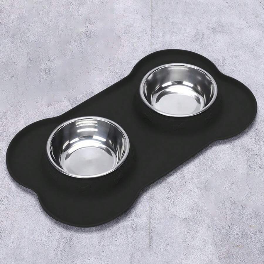 1pc Stainless Steel Double Bowl Pet Feeding & Drinking Bowl With Anti-Spill Tray For Dogs, S/M/L