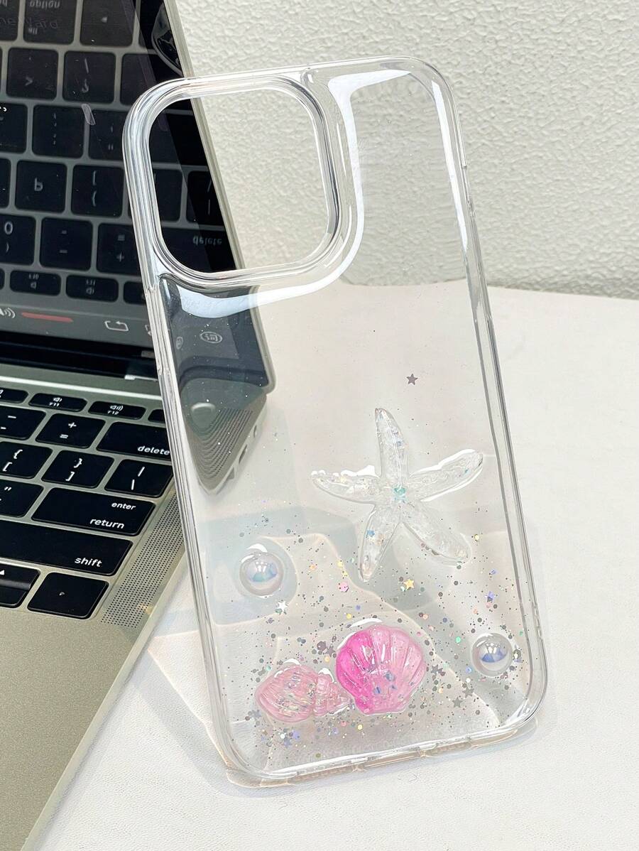 1pc Textured Transparent Starfish & Pink Shell 2-In-1 Resin Mobile Phone Case Compatible With IPhone 11 12 13 14 15 Pro Max Waterproof Shockproof Anti-Fall Scratch Resistant