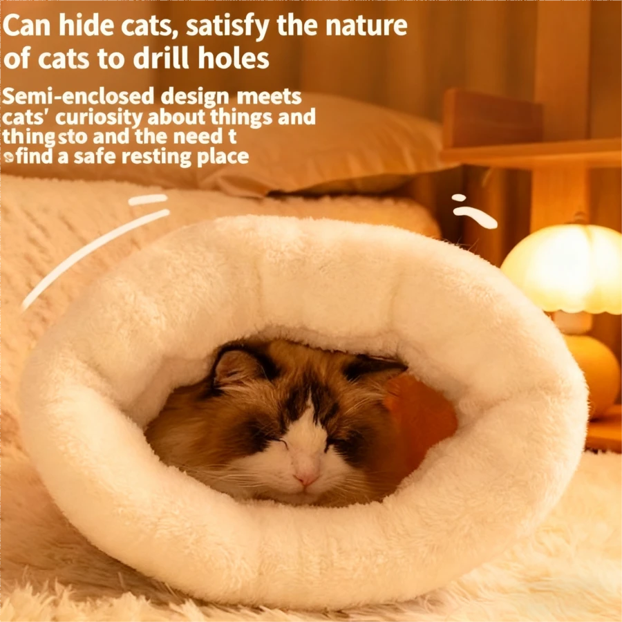 1pc Winter Warm Semi-Enclosed Pet Bed, Tunnel Design For Cats & Dogs, Thick Sleeping Mat, Japanese Minimalist Style, Suitable For Various Pets