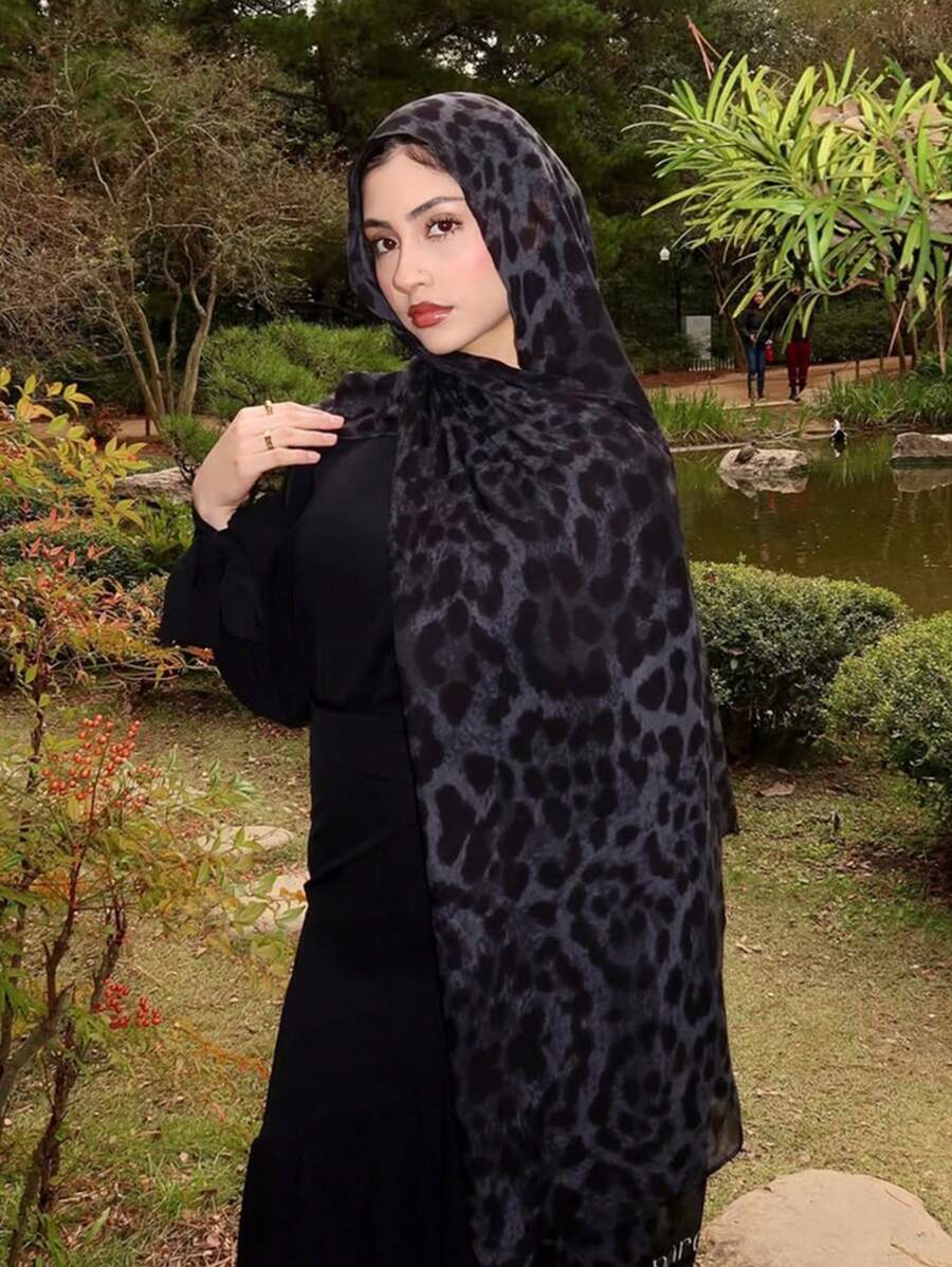1pc Women's Fashion Bohemian Ink Painting Leopard Print Veil Hijab, Casual Street Wear Hijab For Daily Use, Suitable For All Seasons