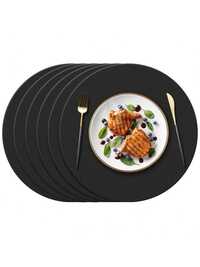 4pcs/1pc Round Faux Leather Nordic Style Coasters, Placemats, Kitchen Accessories, Tabletop Mats, Heat Resistant, Non-Slip, Washable, Waterproof, Suitable For Holiday Decoration, Party, Dinner Table Protection, Easy To Clean, Tableware, Fit For Candlelight Dinner, Daily Gathering, Events, Parties.