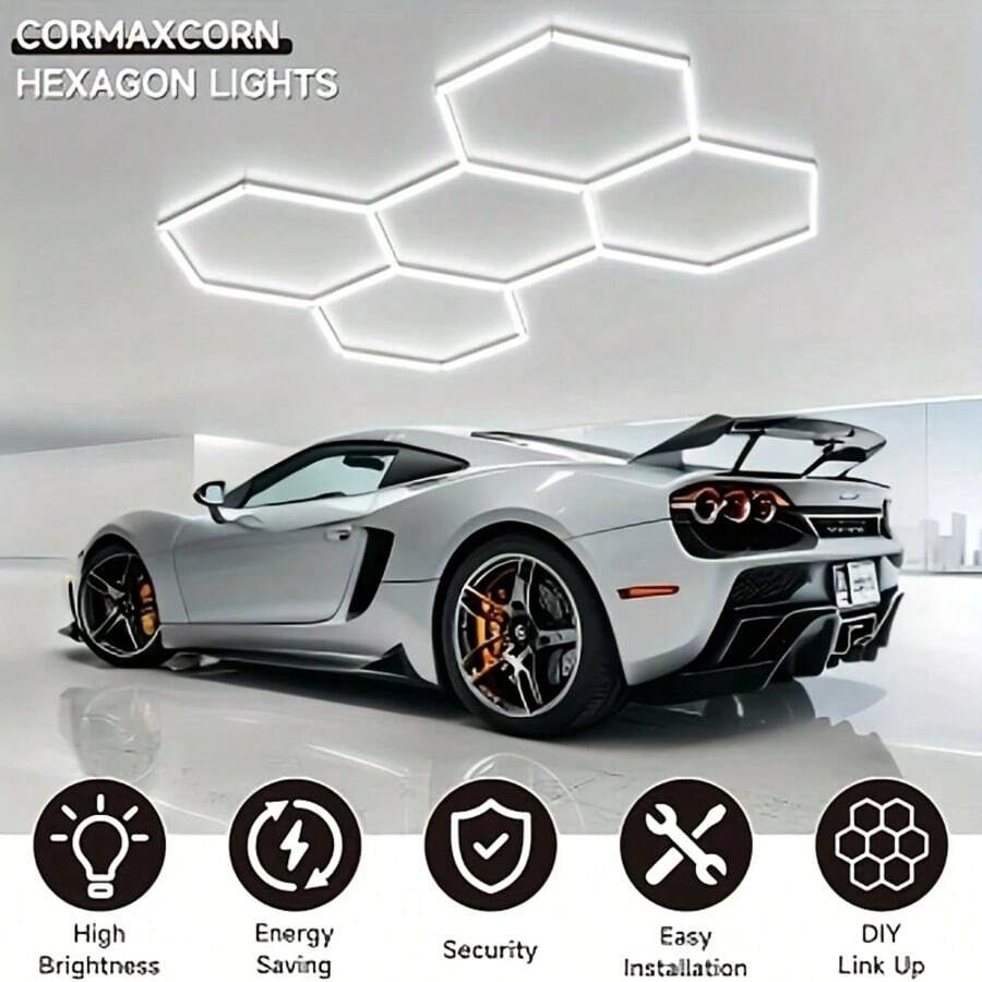 24pcs Hexagon LED Garage Lights - 26400LM Super Bright Ceiling LED Shop Lights - Upgraded Larger Size, Suitable For Warehouse, Workshop, Gym, Basement, Auto Care, Car Wash