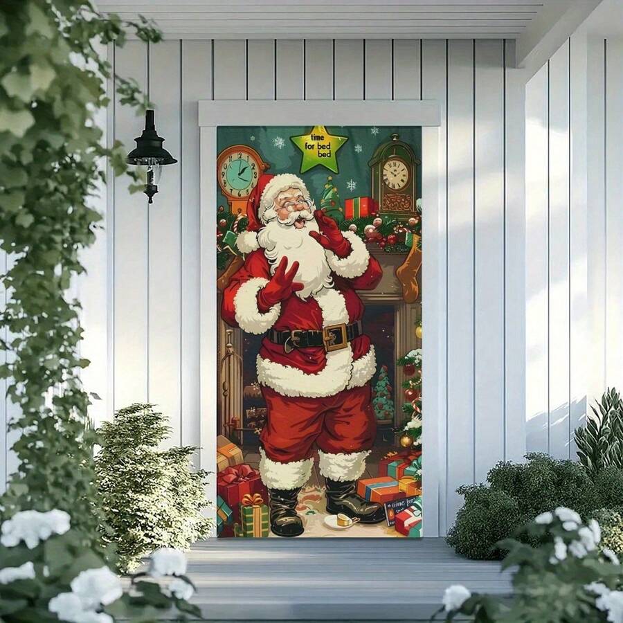 2D Door Hanging Decor - Large Santa Claus With Gift Christmas Door Hanging Decor, Made Of Polyester Fiber, No Power Source Required, Suitable For Most Doors, Holiday Home Decor, Best Choice For Easy Hanging, Christmas Decoration