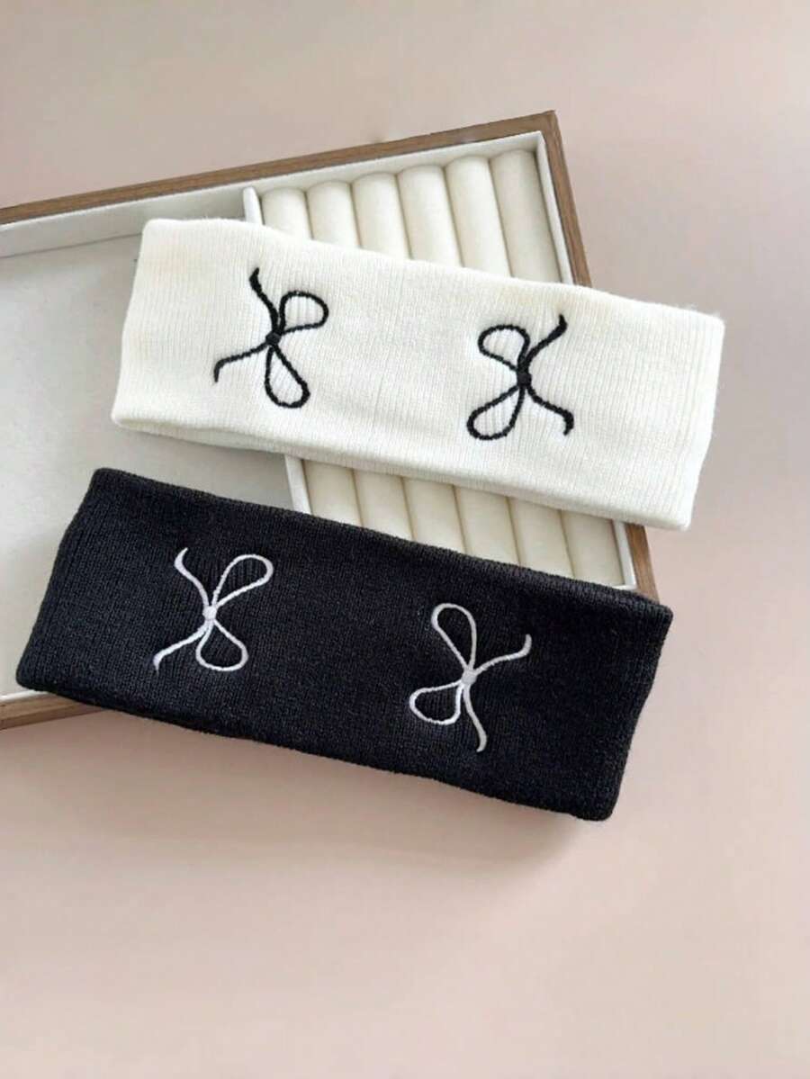 2pcs Women Elegant Minimalist Bow Print Headband Set, Black And White Classic Versatile Styles, High Elastic Moisture-Wicking Hair Bands Suitable For Daily Wear, Sports, Yoga, Dancing And More,Gifts,Travel,Gifts For Women,Hair Stuff,Stocking Stuffers