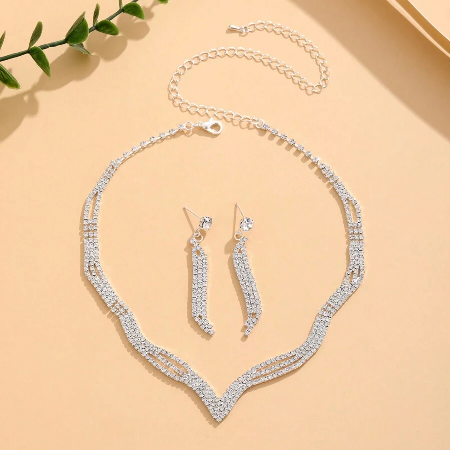2 Pièces /set Ensemble De Bijoux De Mariée Délicat Et Magnifique Avec Collier Brillant Et Boucles D'oreilles