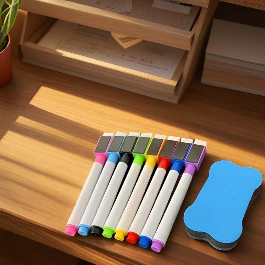 8pcs Scratch-Free Whiteboard Pen Set - Various Colors, Easy To Clean Magnetic Dry Eraser Pen, W1pc1pcs Blackboard Shaving, Suitable For Office, White Dry Eraser Pen, Wet Eraser Pen, Whiteboard Marking, Demonstration Supplies