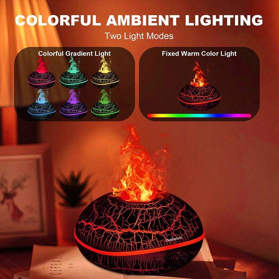 Betreasure 200ML Colorful Aroma Diffuser - Volcanic Crack Design, Ultrasonic Cool Mist Humidifier With Smart Chip, Suitable For All Indoor Spaces And Plant Humidifying Needs, Multi-Level Settings And Gradient Lighting, Auto Shut-Off Protection, Essential Home Humidifier