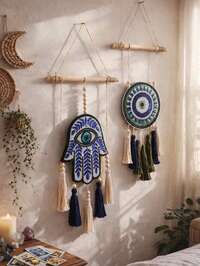 2D plat, 1 pièce Décoration suspendue de couronne charmante, décoration de fenêtre, attrape-rêves et capteur de soleil pour décoration de porte et fenêtre, œufs de Pâques et couronne pour décoration de Pâques, sans pile nécessaire, décoration de pendaison, cadeau d'anniversaire et de fête, cadeau de Pâques, utilisation intérieure/extérieure, convient à toutes les décorations de 6 pièces 1 pièce Suspension murale macramé main de Fatma avec œil mauvais, pompons bleus et blancs, décoration murale bohème, perles en bois art bohème pour la maison spirituelle, le studio de yoga, la salle de méditation, la chambre, le salon, l'entrée, le bureau, l'autel wiccan, le coin de lecture de tarot, amulette de protection, porte-bonheur, esthétique côtière et de ferme #9 BEST-SELLERS
