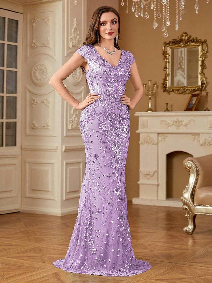 hezixi Elegant Sequin Sexy Evening Dress For Women Long Mermaid Formal Prom Luxury Wedding Party Cocktail Gowns Women's Dresses, For Wedding Guest