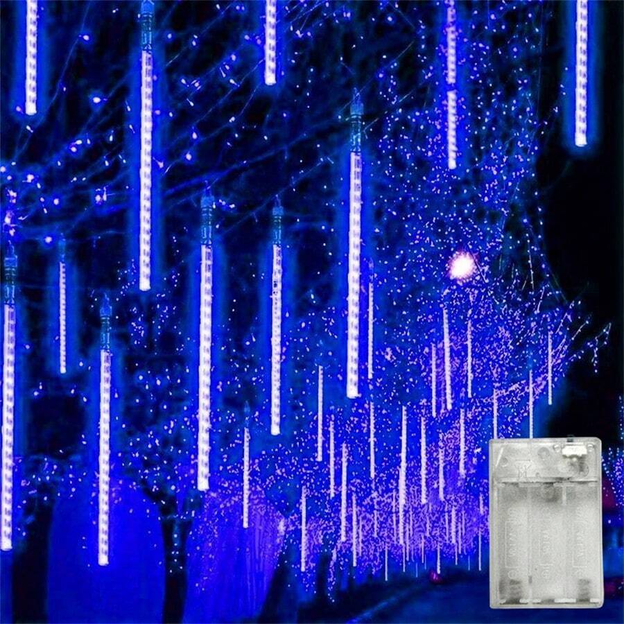 LED Meteor Shower String Lights, Battery Powered, 8-Tube Christmas Tree Hanging Decor, Suitable For Holiday Lighting, Christmas, Halloween, Wedding, Yard, Home Decoration