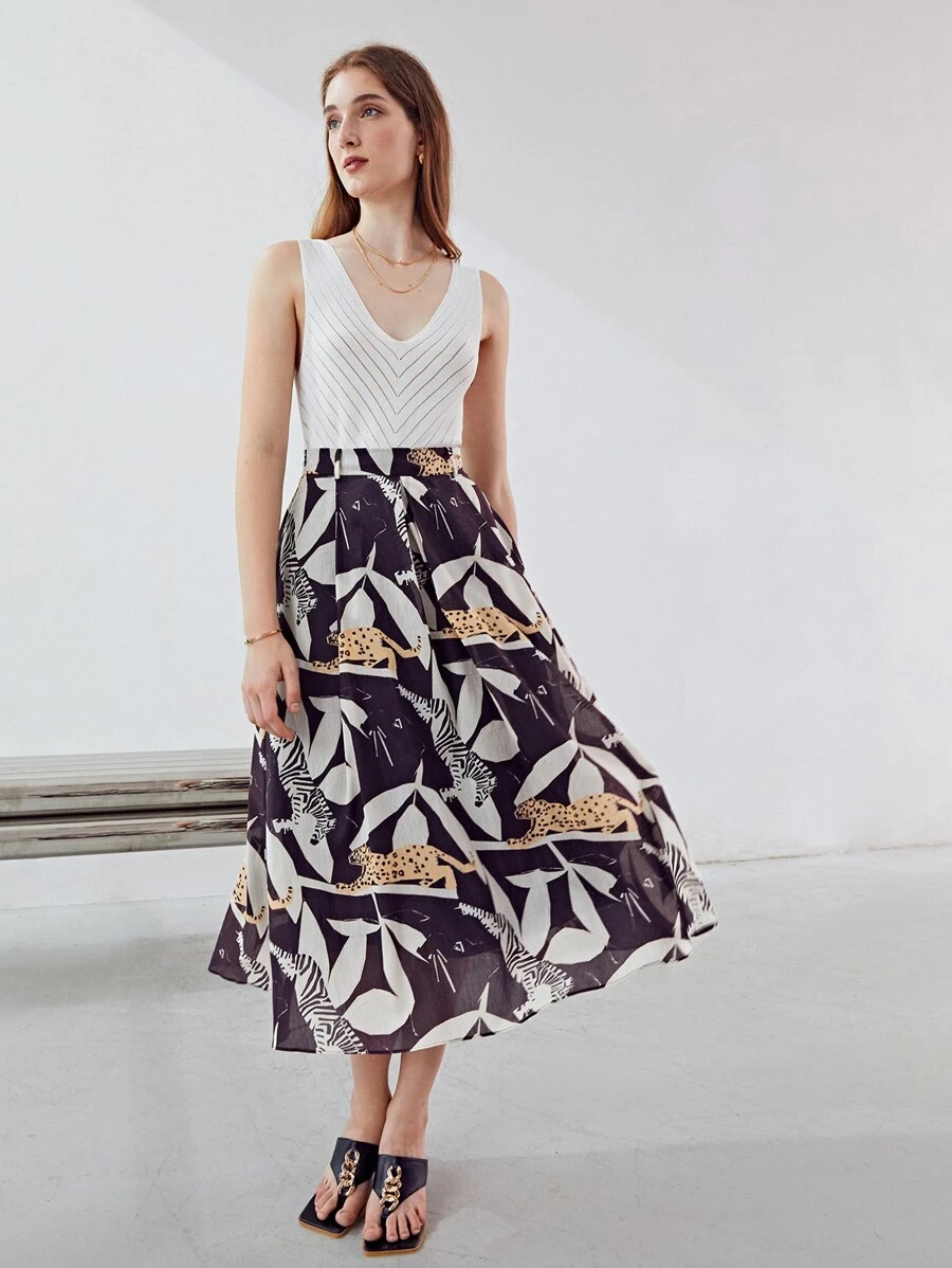 MOTF PREMIUM LINEN MIX ANIMAL PRINT SKIRT