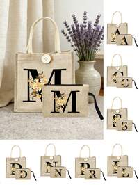 Mesh Cosmetic Bag With Data Cable Pattern, Red Air Cushion Storage Portable Storage Bag, Makeup Bag, Skincare Bag, Travel Essentials, Dormitory Supplies, Wedding Bride Gifts, Mother Gifts, Birthday Gifts, Gifts For Friends And Teachers, Bathroom Storage, Jewelry Storage, Lip Oil And Cosmetics Storage Bag,Valentine'S Day Gifts, Mother'S Day Gifts A-Z Letter Printed Linen Tote Bag Set, Personalized Gift With Small Pouch, Floral, Mother's Day, Yellow Linen Tote Bag With Black Strap, Large & Small Bag Combo, Perfect Gift For Women, Mothers, Teachers, Friends, Bridesmaids, Beach, Travel