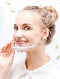 10/20/50 pièces Masque transparent pour l'industrie alimentaire et la restauration, masque de chef, empêche les éclaboussures de salive, masque souriant, boucles d'oreille élastiques et larges, en matériau ABS, durable, facile à nettoyer et à réutiliser