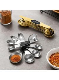 Zazumi Set Of 4/8 High-End Stainless Steel Measuring Spoons And Cups With Wooden Handles - Durable, Rust-Resistant, Easy To Clean, Suitable For Kitchen Cooking, Baking, DIY Projects, Kitchen, Travel, Coffee And Tea Making, Bartender Scale Accessories, Kitchen Tools, Kitchen Supplies, Available In Various Colors And Sizes, Stackable Storage To Meet Your Various Needs 5/9pcs Magnetic Measuring Spoon Set, Double-Sided Tea Spoon Measuring Spoons, Heavy Duty Stainless Steel Measuring Spoons With Level, Suitable For Measuring Dry And Liquid Components, Accurate Measurement - Coffee Scoop, Baking Tools, Measuring Spoons, Precise Measurement, Double-Headed Measuring Spoon Set, Kitchen Utensils, Apartment Essentials, Halloween & Christmas Gifts