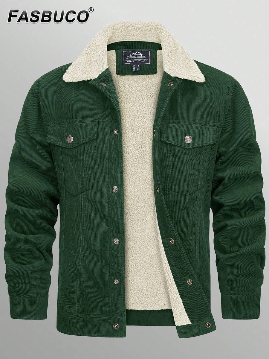 FASBUCO Men's Corduroy Casual Jacket Cotton Sherpa Lined Fleece Lapel Thickened Trucker Jacket Snap Button Coat