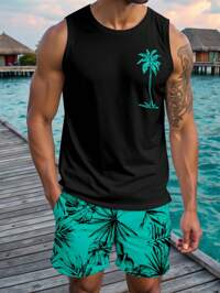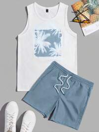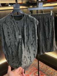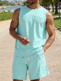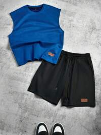 Manfinity EMRGManfinity EMRG Men's Street-Style Casual Outfit Featuring A High-Street, Retro Suede-Like Fabric In Black And Blue Color-Block Details, Accented By A Clean Woven Label Design. This Stylish And Minimalist Top Set Is Perfect For Music Festivals, Seaside Vacations (Like In Hawaii), And Everyday Wear. It Also Makes A Great Gift For A Boyfriend Or Husband. Men's Solid Color Minimalist Tank Top And Shorts Set, Suitable For Summer, Men Two Pieces Shorts, Men Shorts Set, Men 2 Pieces Set Shorts, Workout Clothes For Men, Workout Shorts, Men Shorts 2 Pieces Set