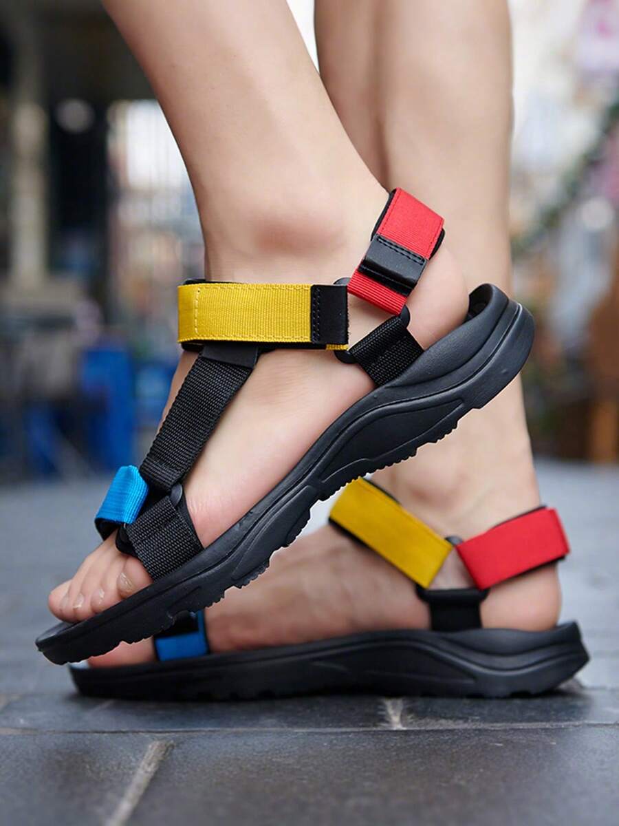 Men's Casual Fabric Sandals, Anti-Skid Hook & Loop Fastener Summer Beach Sandals For Outdoor Walking