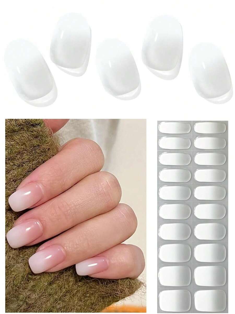 Milky Jelly White Semi-Cured Gel Nail Wraps 20Tips Fashion Color Long Lasting Full Cover Nail Gel Sticker Wraps