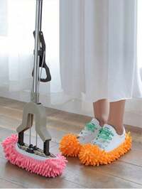 2 Pairs Mop Socks, Mop Slippers, Washable Floor Cleaning Shoe Covers, Soft Super Microfiber Dust Mop Socks, Fiber Cleaning Mop Replacement Pads, Reusable, Suitable For Men, Women, And All Ages, Can Clean Foot Dust And Hair, Applicable For Home, Office, Bathroom And Kitchen. SHEIN 1PC Hands-Free Mop, Flat Mop With Stainless Steel Handle, Wet & Dry Use, Rotating Mop Pad, Clip-On Design With Wring, Tile & Hardwood Floor Cleaning, Bathroom Cleaning Tool, Absorbent Mop, Wood Floor Flat Mop (Includes Mop Pad*1), Protects Floor, No Residue #8 Bestseller