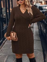 in Coffee Brown Plus Size Sweater Dresses