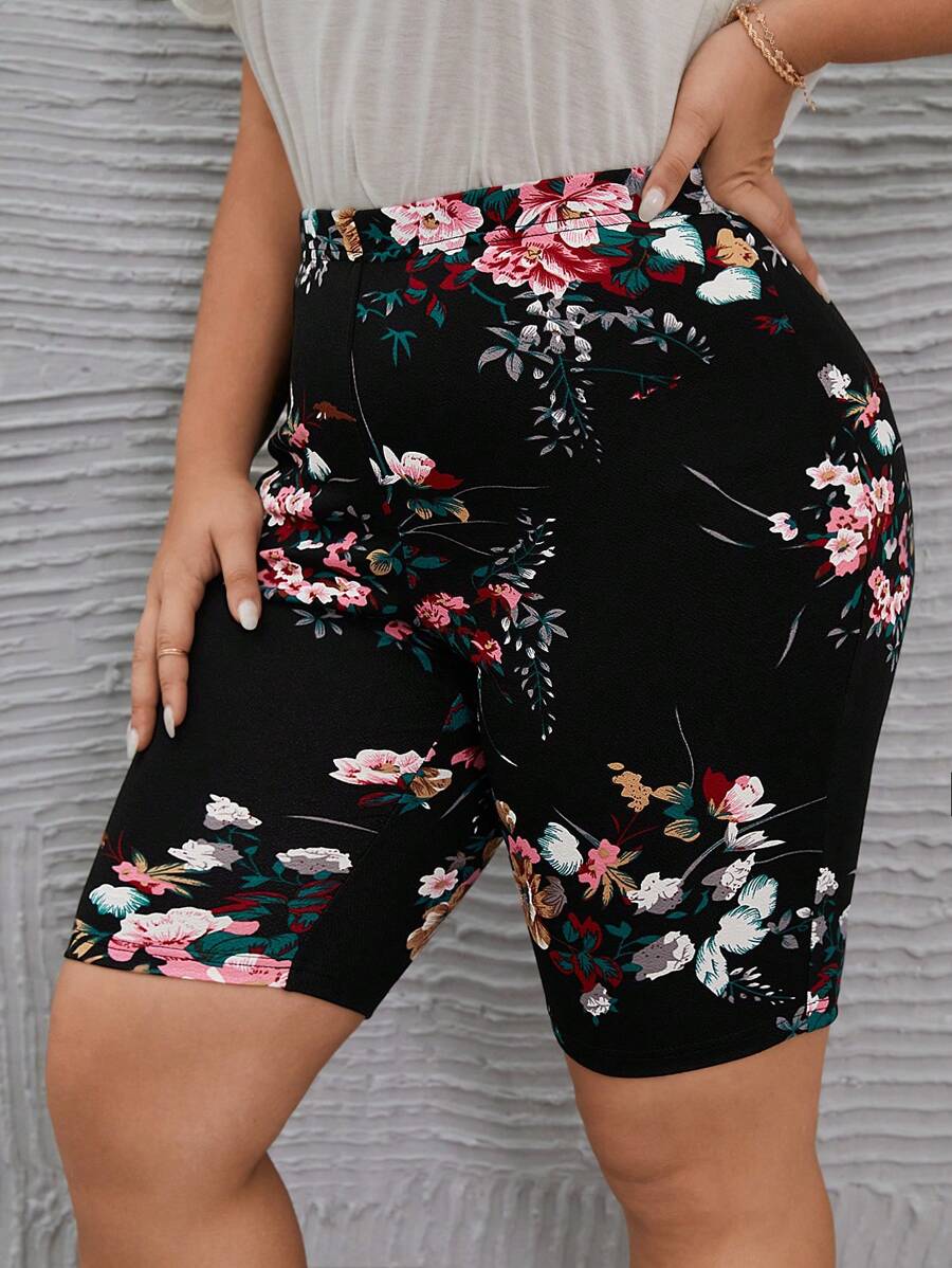 SHEIN LUNE Plus Floral Print Biker Shorts
