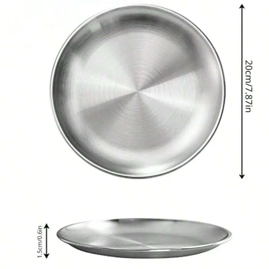 Stainless Steel Plates, 7.87 Inches Dinner Dishes Serving Camping Plates For Picnic Outdoor Camping, Reusable And Dishwasher, Festival Supplies
