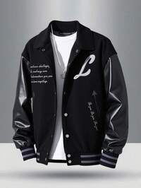 1pc Teenage Boys' Minimalist PU Leather Black Casual Jacket, Stand Collar Design, Loose Fit, Comfortable For Autumn, Spring, Winter, Suitable For Daily Wear, Commuting, Outdoor, Sports, School, Streetwear, Party, Photography,Unisex