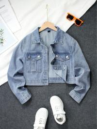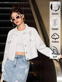 DazySparklyn Teen Girl Casual Fashion Retro Personalized All Season Style Washed Denim Jacket, Casual & Sports Style , Autumn/Winter 2025 New Arrival, Suitable For Daily Wear Collegiate Style, Street Fashion, Casual, Cute, Retro, 2000s Millennium Style, Pop, Bohemian Style, Street Style Fall