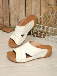 Summer New Girls' Fresh Open Toe Minimalist Sandals, Triangle Hollow Wedge Mules, Beige Peep-Toe Platform Non-Slip Durable Soft Breathable Non-Abrasive, Essential For Daily Wear, Indoor, Home, Outdoor, Vacation, Lightweight Easy To Slip On, Comfortable Stylish Wedge Platform Casual Sandals, Versatile Portable Leisure Slippers Summer New Girls' Retro Open Toe Slippers, Three-Color Hollow Wedge Mule Shoes, Vintage Forest Style, Red/Blue/Green Contrast Color Non-Slip Durable Soft Breathable Comfortable, Suitable For Daily Wear, Indoor, Outdoor, Street Fashion, Lightweight Easy To Wear, Personalized Design Teenage Casual Sandals, Multi-Scene Matching Portable Contrast Color Slippers