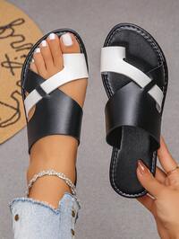 New Summer Teens Cross Strap Flip Flops Sandals, Black & White Contrast Color, Flat Bottom, Suitable For Students, Fashionable, Casual, Open Toe, Dual-Color, Holiday, Party, Gladiator Design, Non-Slip, Durable, Round Toe Sandals #2 Bestseller