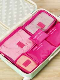 7 Pcs Premium Textured Solid Colour Travel Organizer Monogrammed Clothes Storage Bag, Travel Organizer Sets, Packing Cube Sets, Luggage Storage Bag Sets School Supplies College Dorm Essentials Student Room Decorations For Lipstick, Brush, Skincare, Mobile Phone, Coin, Small Items, For Home, Gift, Vacation And Festival Halloween Christmas Multifunctional Use, Boho Vibes #1 Bestseller