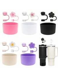 7pcs Reusable Straw Lids, Fit For 40oz & 30oz Cups, 10mm Cute Straw Decor Accessories, Portable Protective Caps, Party Favors, Floral Straw Dust Cover, Compatible With Cup Accessories, Colors Include Beige, Purple, Pink, Blue, Black, White And Red. #10 Bestseller