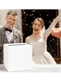 1pc Elegant White Card Box With Gold Foil Design, Platinum Wedding Card Box With Slot, Perfect As A Wedding Gift, Babe Shower, Wedding Cash Box Holder, Baby Shower, Anniversary, Birthday Party, Graduation Table Center Decoration, Wedding Decoration, Decorative Centerpiece, Room Decoration, Most Popular Among Brides At Parties, Summer Gifts Beach Supplies #2 Bestseller