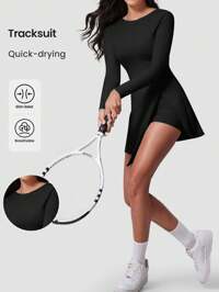 MFVIM Women's Spring/Summer Sports Jumpsuit Dress, Nude Feeling 2 In 1 Sports Dress With Built-In Shorts, Skin-Tight Yet Not Tight, Puff Flower Bud Hem Design, Fluffy Silhouette, Suitable For Casual, Commuting, Outdoor, Hiking, Jogging, Cycling, Yoga, Pilates, Gym Workout