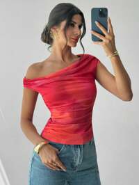 TseosoFirerie Women's Shoulder Ombre Pleated Asymmetric Neck T-Shirt, Floral Print Top, Oblique Shoulder Blouse, Spring/Summer Clothing, Suitable For Beach, Commute, Elegant, Sexy, Holiday, Boho, Hawaii, Music Festival, Romantic, Date, Vacation Outfits Woman #1 Bestseller