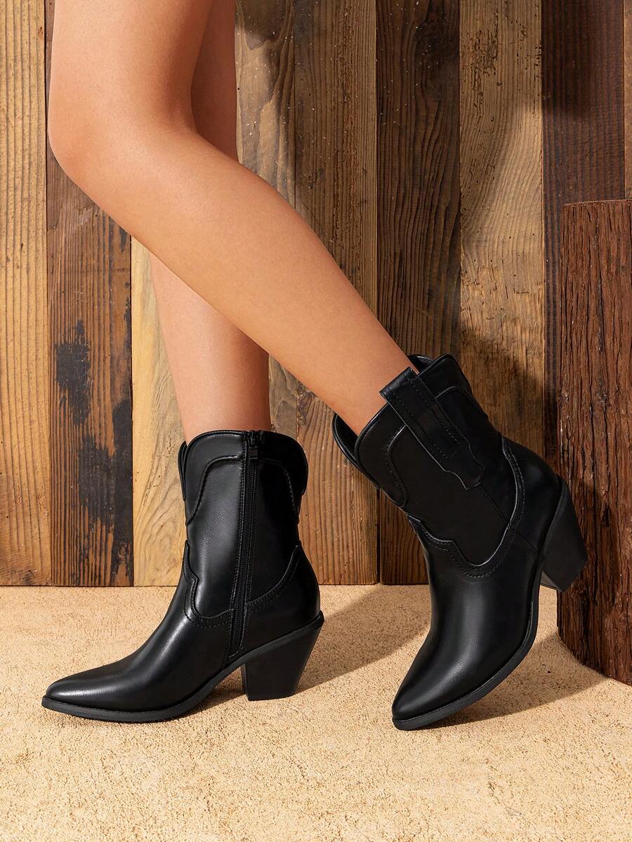 Women's Cowboy Ankle Boots Western Fashion Cowgirl Mid-Calf Boots Low Chunky Block Heel Pointed Toe Fall Booties Shoes