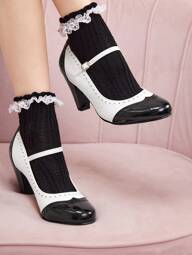CUCCOO SZL Pointed Toe Kitten Heel Elegant Commuter Bow Contrast Color Women's High Heel Pumps, Casual Chic Commuter Outfit, Graceful Aesthetic Vintage Style For Christmas