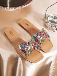 CUCCOO TILAWA Fashionable Pointed Toe Champagne Color Fully Rhinestone Decor Comfortable Versatile Flat Women Shoes For Christmas