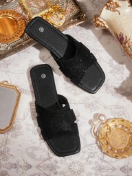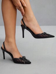 CUCCOO CHICEST Women's Summer New Arrival Bow Round Toe Kitten Heel Elegant Sweet Romantic Black Satin Mesh Patchwork Sandals Slide Sandals, Suitable For Afternoon Tea, Date, Elegant Outfit, Vacation For Christmas