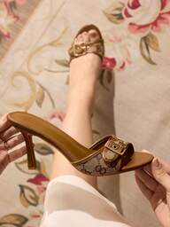 CUCCOO SZL French Retro Lucky Stone Gemstone Strap Roman Round Toe Fashion Comfortable Versatile Brown High Heel Sandals, Suitable For Commuting, Dating, Party, Holiday, Wedding For Christmas