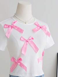 Sweetra Young Tween Girls 3D Bow Crop Fitted T-Shirt, Cute Girly Sweet Y2K Styleholiday,Summer,Travel,Getaway