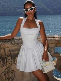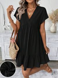 Vivid EdenVivid Eden Valentine's Day Outing Holiday Date Dress, Women's Bohemian Style V-Neck Ruffle Flared Print Holiday Dress, Holiday Summer Beach Color Dress, Back To School Dress, Very Simple Dress, Office Dress, Old Money Dress, Teacher Dress, Birthday Dress, Date Dress, Female Western Style Dress This Is A Retro Bohemian Style Color Fashion Dress