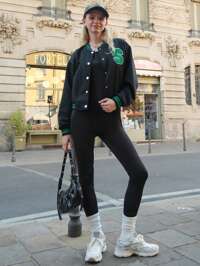 SHEIN 2pcs/Set Teen Girls' Zip-Up Letter Print Contrast Color Jacket & Solid Color Pleated Mini Skirt