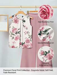 SolflareSHEIN Clasi Curvy Plus-Size Women's Romantic And Elegant Everyday Summer Casual Set: Floral Print Pleated Sleeveless Top + Wide-Leg Pants Two-Piece Set,Women's Summer Set , Summer Outfits , Summer Clothes , Summer Outfits For Women,Spring Outfit Women , Spring,Spring Break Outfits,Valentine's Day , Valentine Outfits For Women,Valentine Clothes,Valentine's Day Outfit,Wedding,Going Out,Elegant Dress For Women , Elegant Dress Women, Vacation Outfits Women , Vacation , Summer Holiday Outfits , Holiday Outfits For Women, Vacation Outfits For Women , Holiday,Sequin Dress,Sparkly Dress,Glitter Dress,Mother Of The Bride Dresses For Wedding,2026 New Floral Set Two Piece Set Women Rose Print Top Floral Print Collection Two Piece Pants Set Long-Lasting Color Spring/Summer Outfit For Women